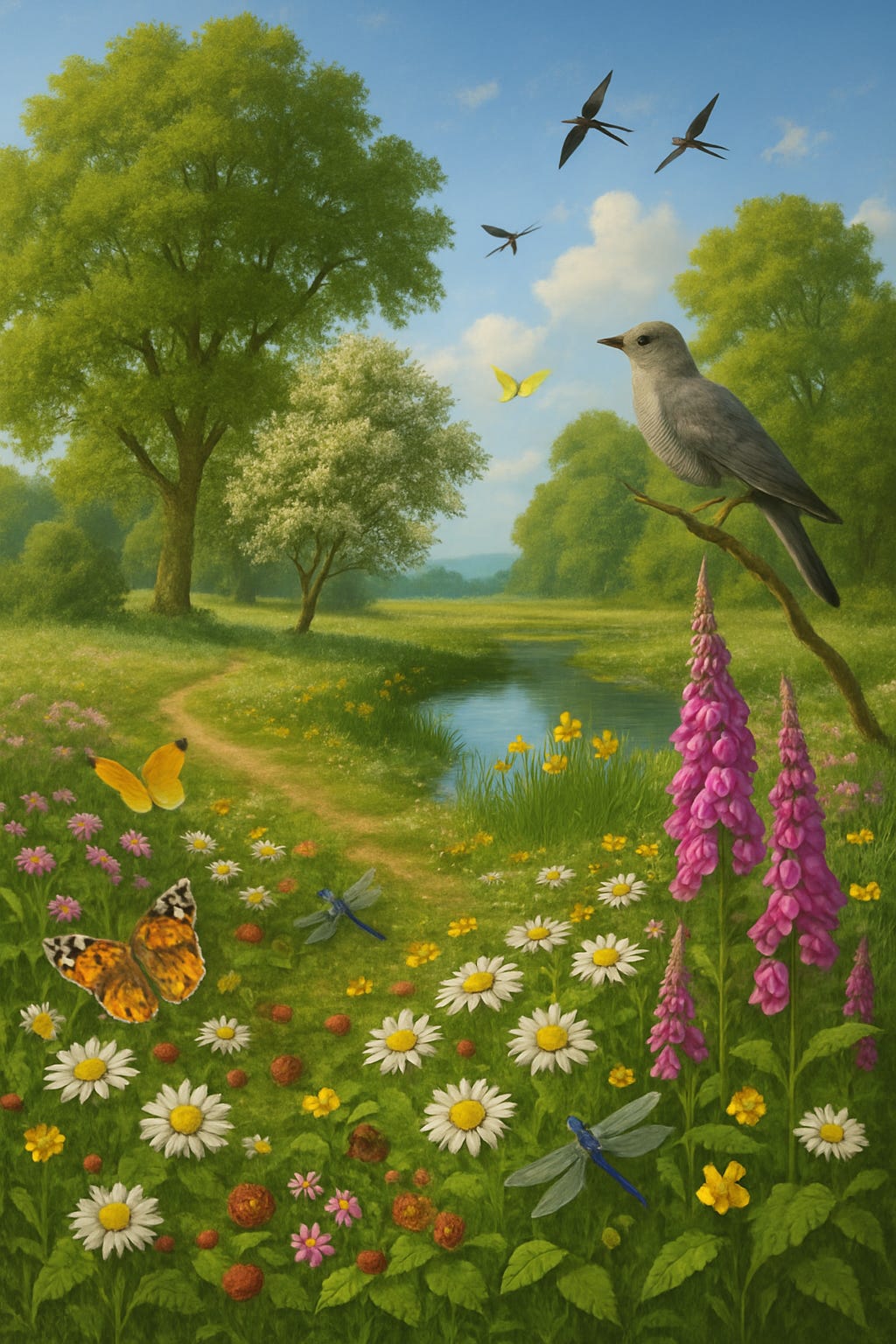 Bijzonder in mei is natuurlijk ook de late aankomst van de verre trekkers, zoals distelvlinders en atalanta’s, trekvlinders die uit Afrika komen. Ze voegen zich bij andere dagvlinders als het citroentje, koolwitje, dagpauwoog, het oranjetipje, en de vele duizenden nachtvlinders (ten onrechte ook wat denigrerend als motten aangeduid). Ook laat uit Afrika komen de bosrietzanger en de spotvogel, boeren, oever en huiszwaluwen en de bonte vliegenvanger. Daarmee is het vogelgezelschap wel compleet. Sterker nog, eind mei is er al een dikke kans dat de koekoek (zie podcast 166: de moeilijke keuzes van de koekoek) ons alweer gaat verlaten, op weg naar Afrika. Die heeft zijn jongen dan toevertrouwd aan graspieper, heggemus of kleine karekiet.