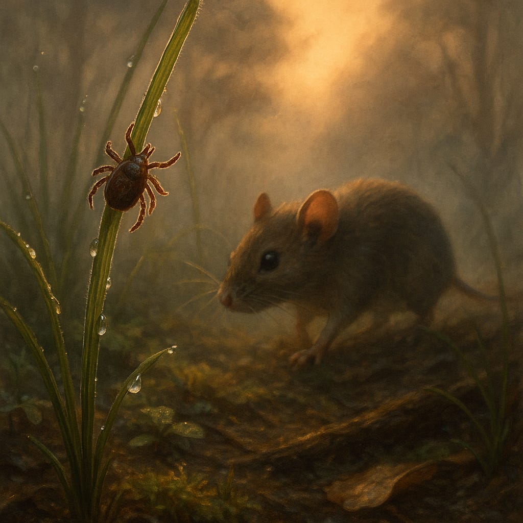 Deze spinachtige diertjes hebben een ingewikkelde ontwikkeling van ei tot larve tot nimf tot volwassen teek waarvoor ze meestal bloed van drie verschillende gastheren nodig hebben. Wij hebben vooral last van de gewone of schapenteek, die na kleine knaagdieren, egels en konijnen ook via het hoge gras op katten, honden, schapen en mensen over kan stappen. Oppassen geblazen, we worden 1.5 miljoen keer per jaar gebeten, 300.000 mensen worden jaarlijks geïnfecteerd en zo’n 27000 mensen krijgen Lyme.🌼