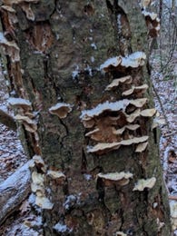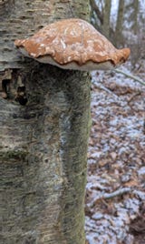 Ook als het een kille januari is, met vriesweer en gure buien, zijn in het bos paddenstoelen te vinden. Van elfenbankjes tot judasoren, van gele trilzwam tot de berkenzwam en de echte tonderzwam, vrijwel alles wat er nu aan paddenstoelen te zien bevindt zich op dood hout. Of op bomen die er niet te best aan toe zijn.